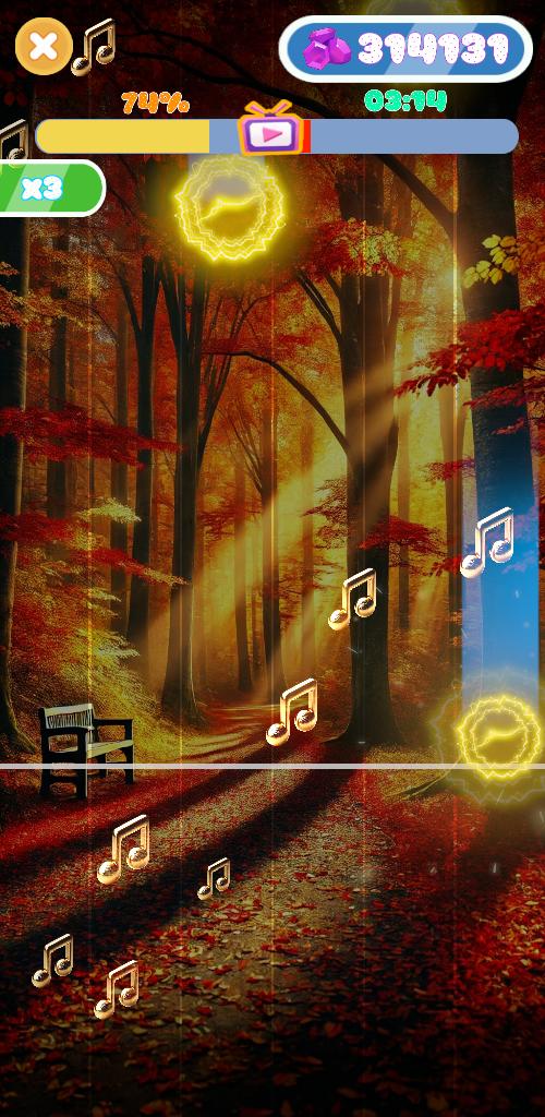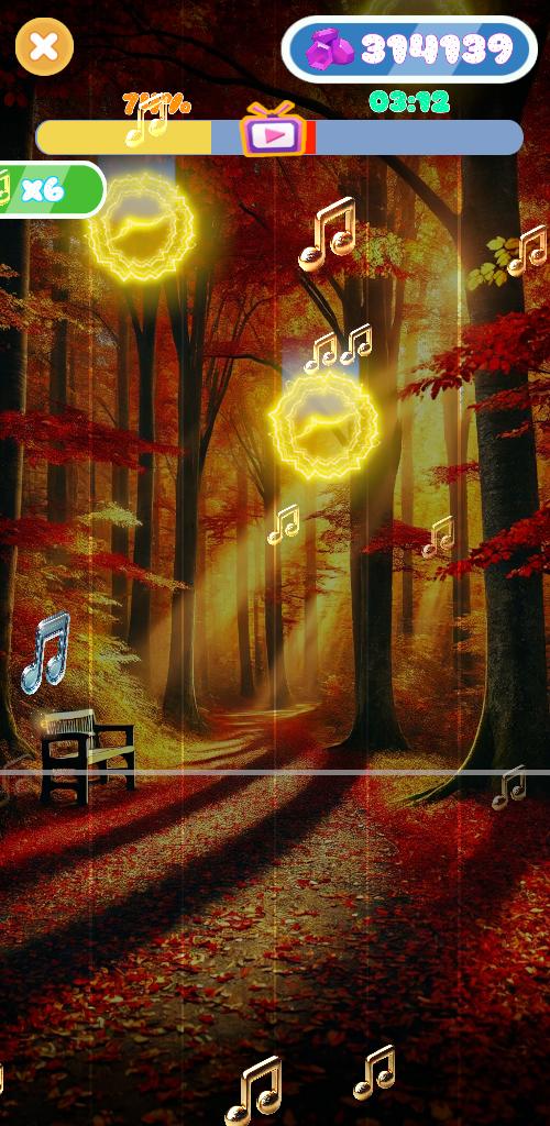 Sie müssen genau im richtigen Moment auf die Notizen tippen, die auf dem Bildschirm erscheinen. Für jede erfolgreiche Notiz erhalten Sie Belohnungen. Aber Vorsicht! Wenn Sie zu viele Notizen verpassen, verlieren Sie das Spiel. Bleiben Sie scharf und behalten Sie den Rhythmus bei, um Punkte zu sammeln!