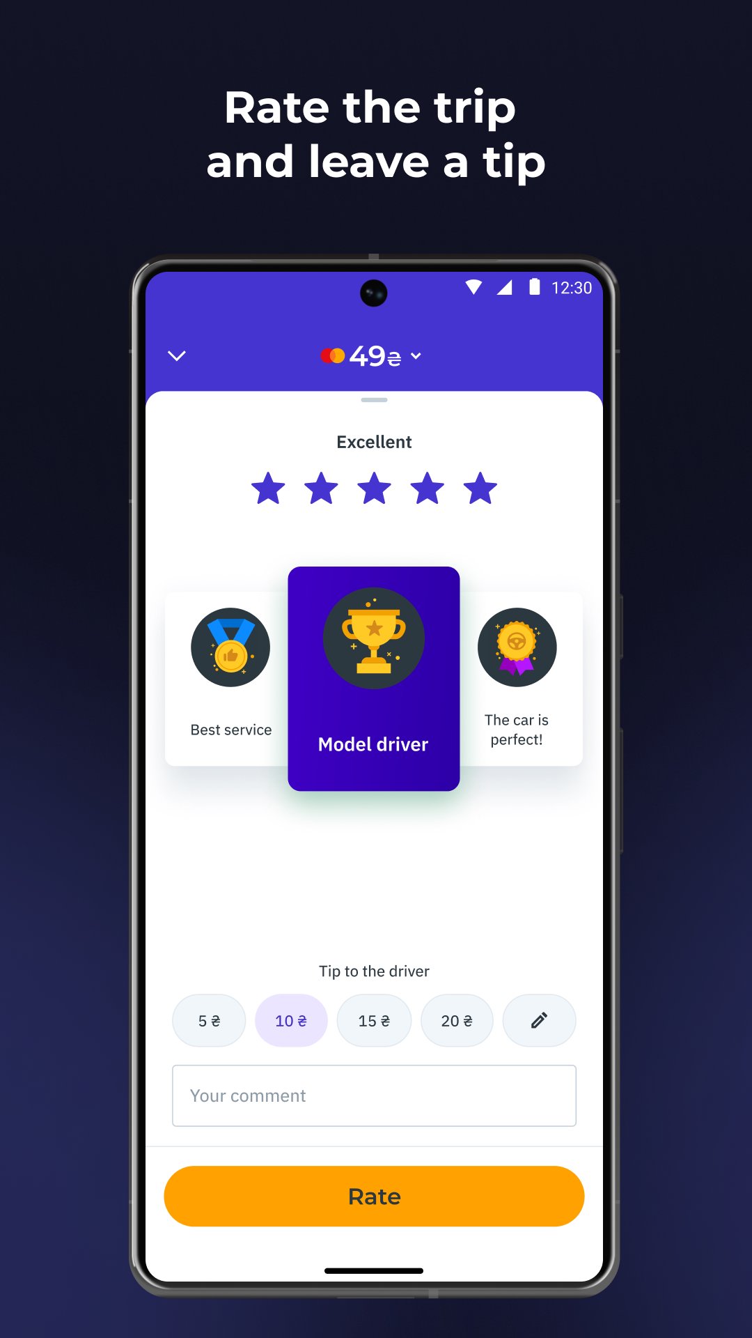 • Fahrer bewerten und Kommentare zu den abgeschlossenen Fahrten hinzufügen