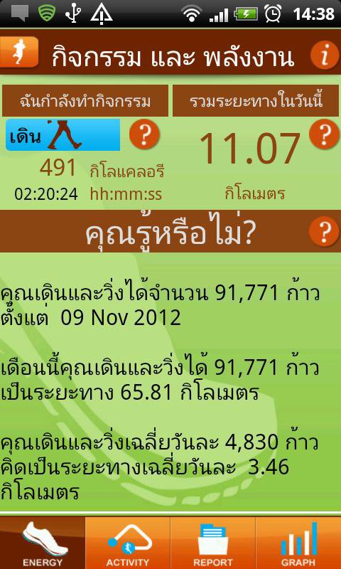 Install My Act and perform a few initial setups. Then carry your smart phone with you while you are on the move or rest. Your movement will be analysed and interpreted into useful information. The information will be shown as you go. No more guessing if you need more active life to be healthier.