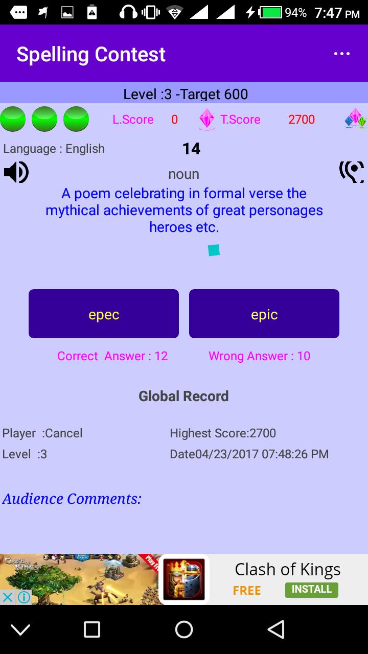 Zauber-Test, wie gut Sie auf Englisch Spelling.The App sind hilft bei Sprachprüfungen.