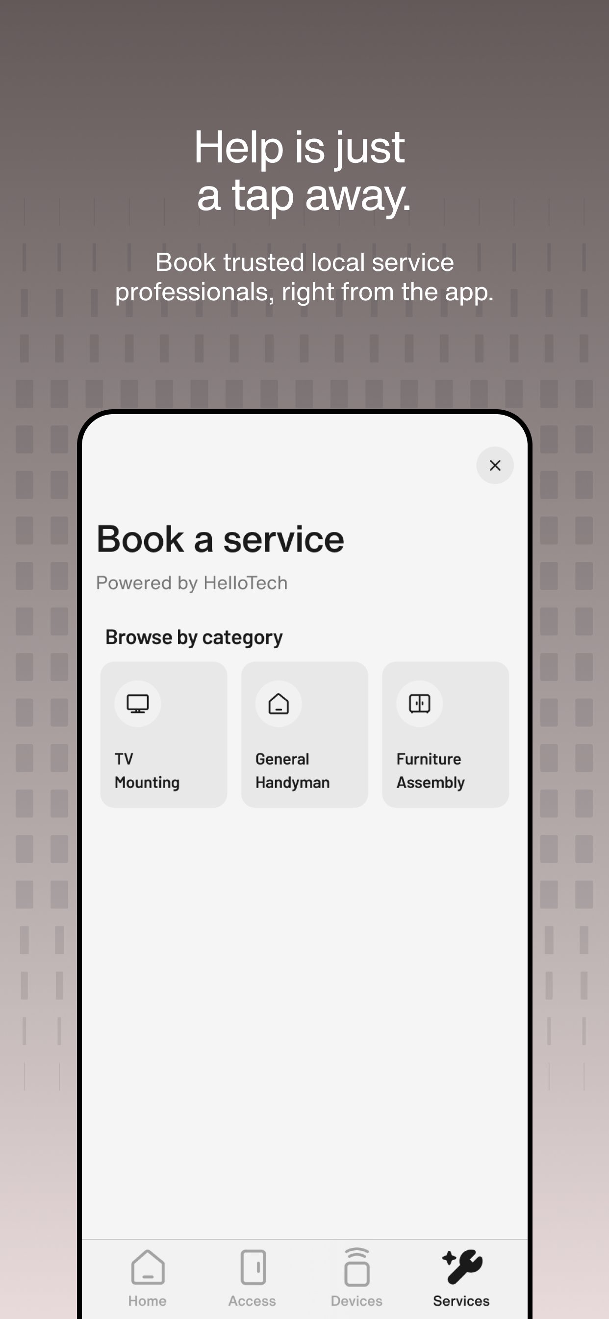 Whether you're arriving home, adjusting your thermostat, or booking a service, DOOR puts everyday control in your hand.