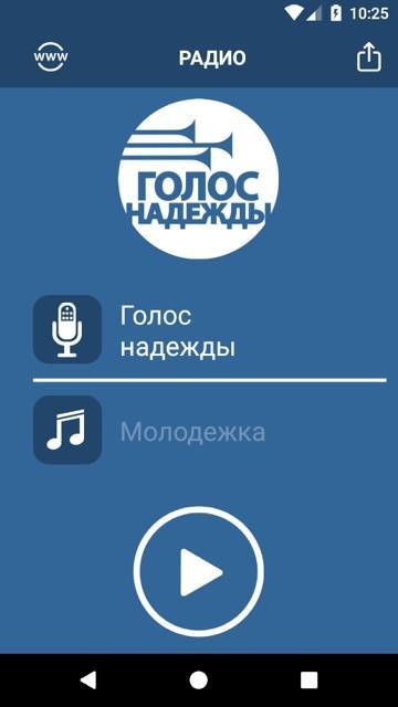 Удобное приложение позволяет слушать на выбор христианское радио "Голос надежды" и радио "Молодежка".