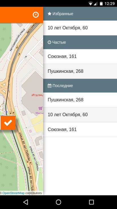 Быстрый вызов такси по постоянным маршрутам (история заказов).