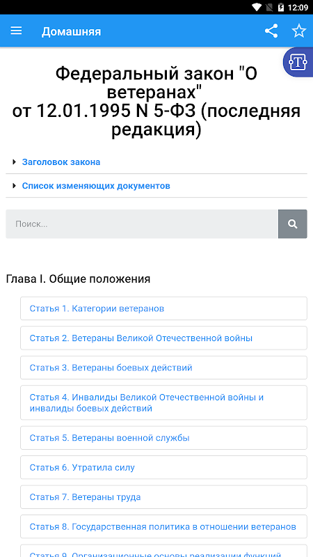 Obtener ФЗ "О ветеранах" versión histórica en Android