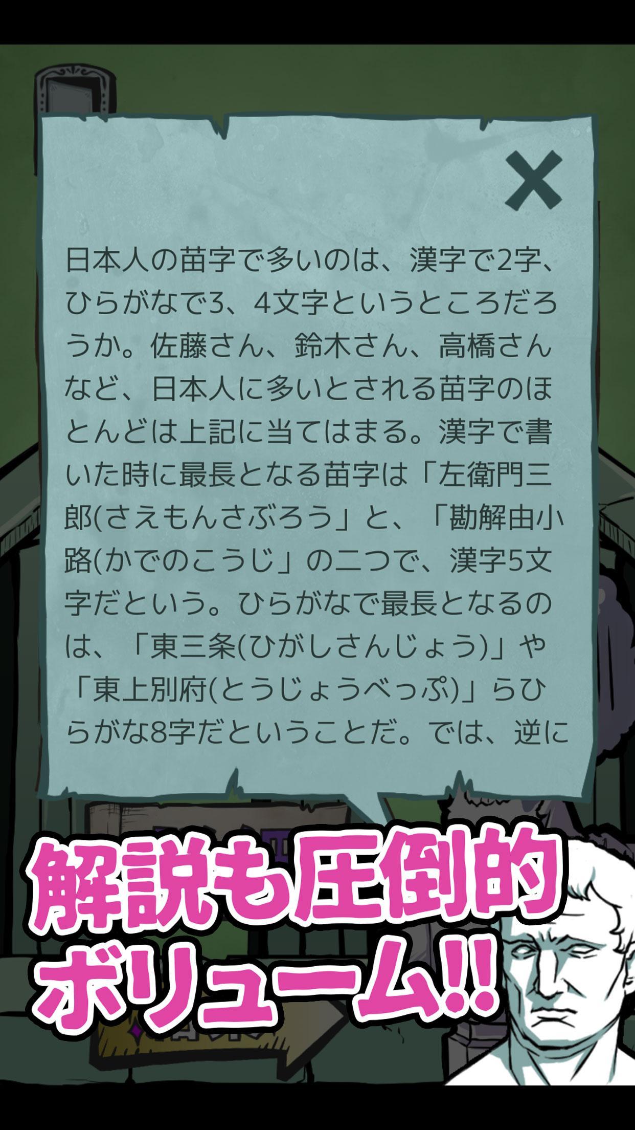 問題に答えると、雑学マスターの「いじわる石膏像」が解説をしてくれます。
