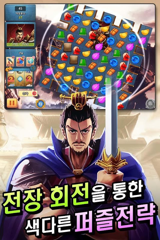 - 다양한 장수 카드와 화려한 특수 기술로 보다 숨막히는 퍼즐 대전!