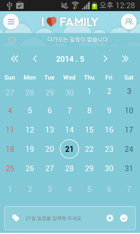 - 가족들이 새로운 일정을 작성하면 알려줍니다.