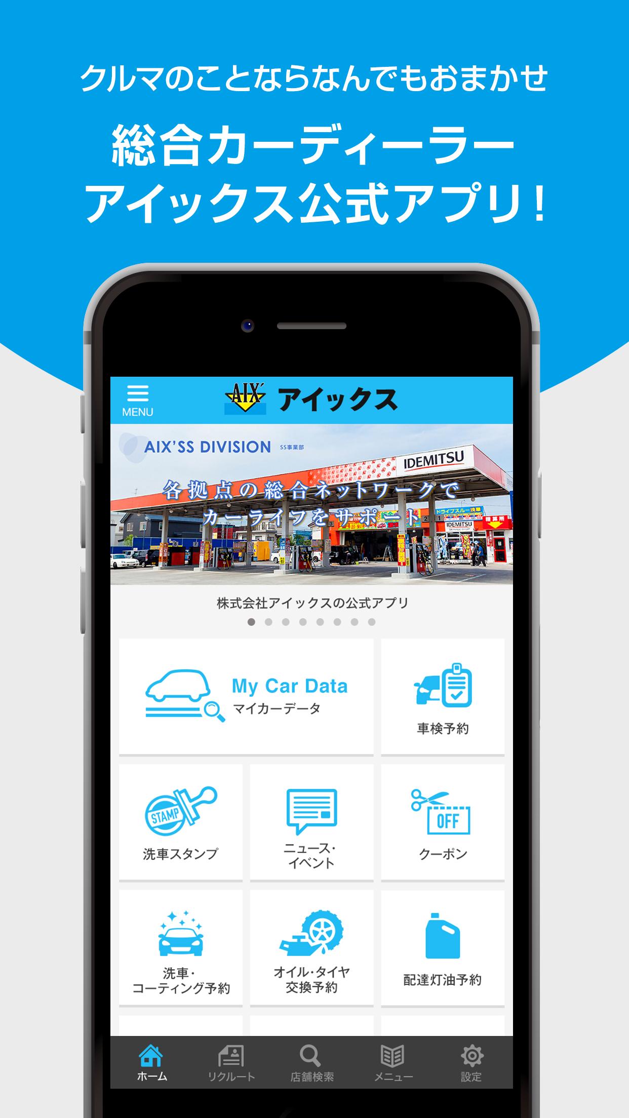 「アイックスアプリ」は、お車を安全に快適にお乗りいただく為に、お客様への情報配信、車検満期のご案内から車検のご予約などが可能なアプリです。