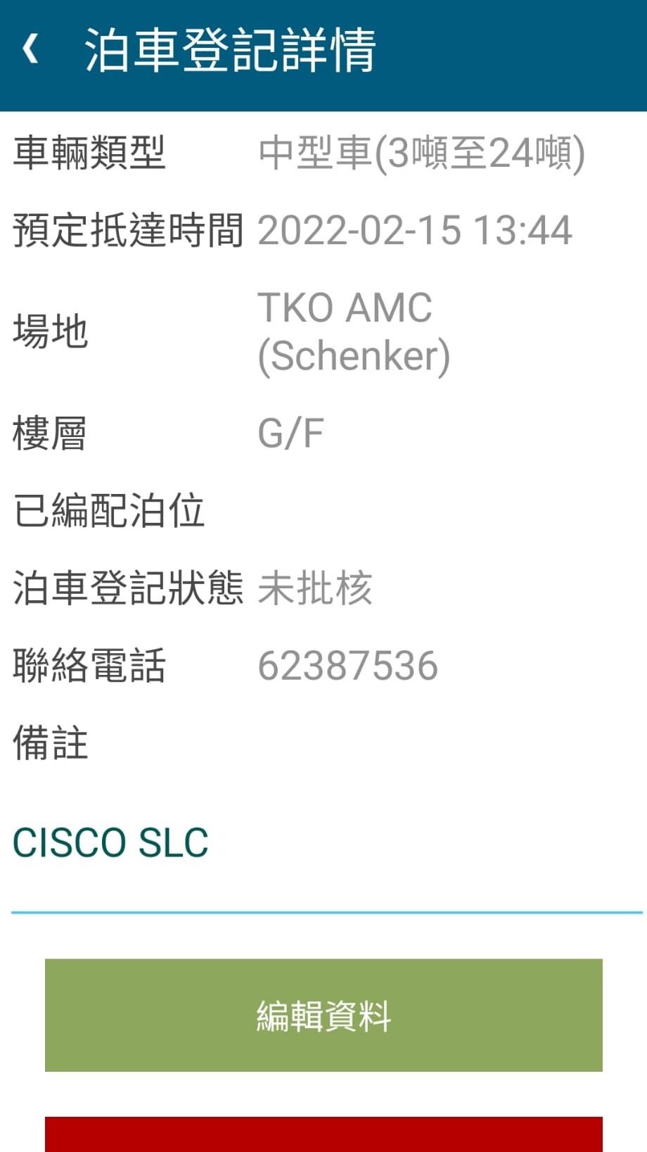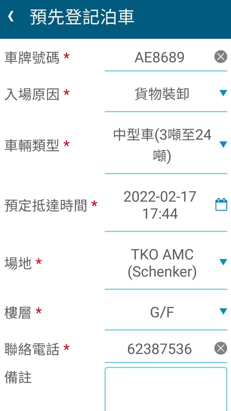 提供登記泊位、提/放貨件功能,包含泊位安排通知