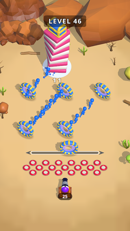 Ajusta los obstáculos para hacer el camino para que las tropas lleguen a la pila. Destruye la torre de pilas y pasa al siguiente nivel.