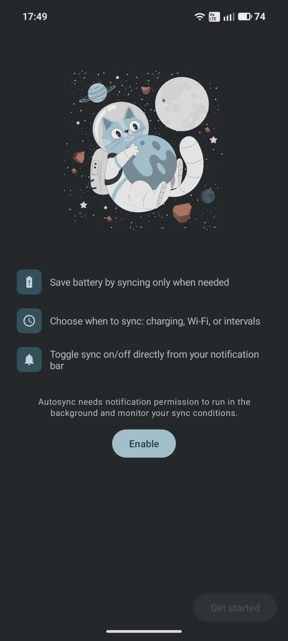 • Integración con ahorro de batería: pausa la sincronización cuando el ahorro de batería está activo (configurable en Ajustes)