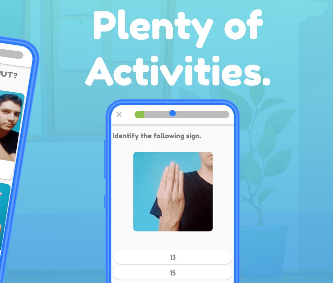* InterSign cuenta con Actividades y juegos adicionales para que practiques y sigas aprendiendo Lengua de señas Americana mientras juegas.