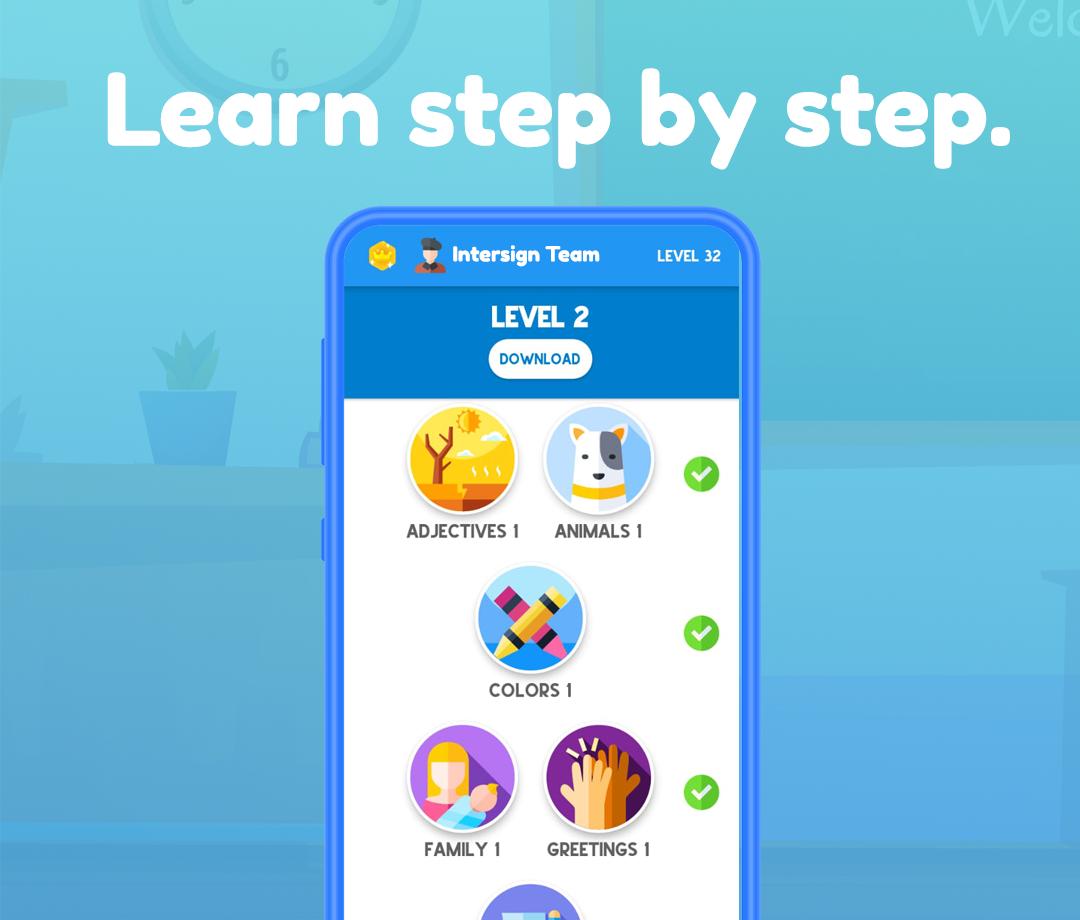 * La dificultad de los niveles de Intersign es progresiva para que puedas aprender (ASL) paso a paso.