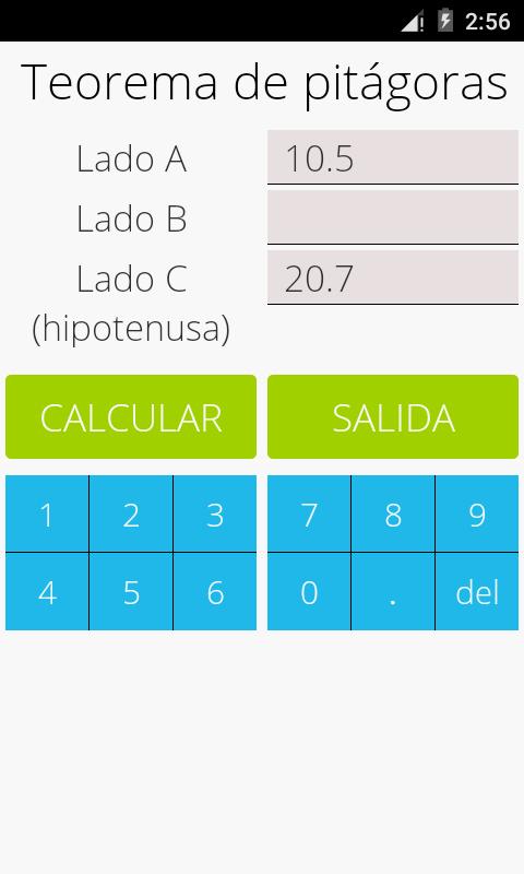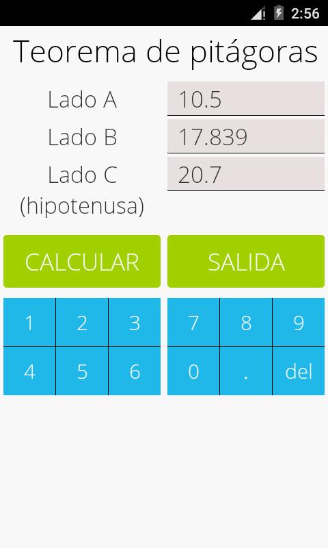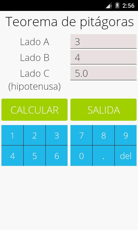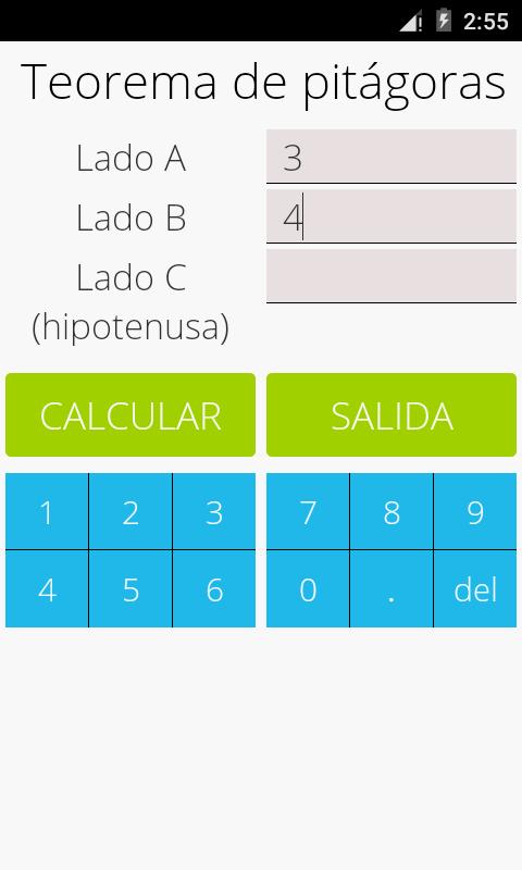 Por ejemplo entran lado A y lado B y la calculadora calculará la longitud del lado C.