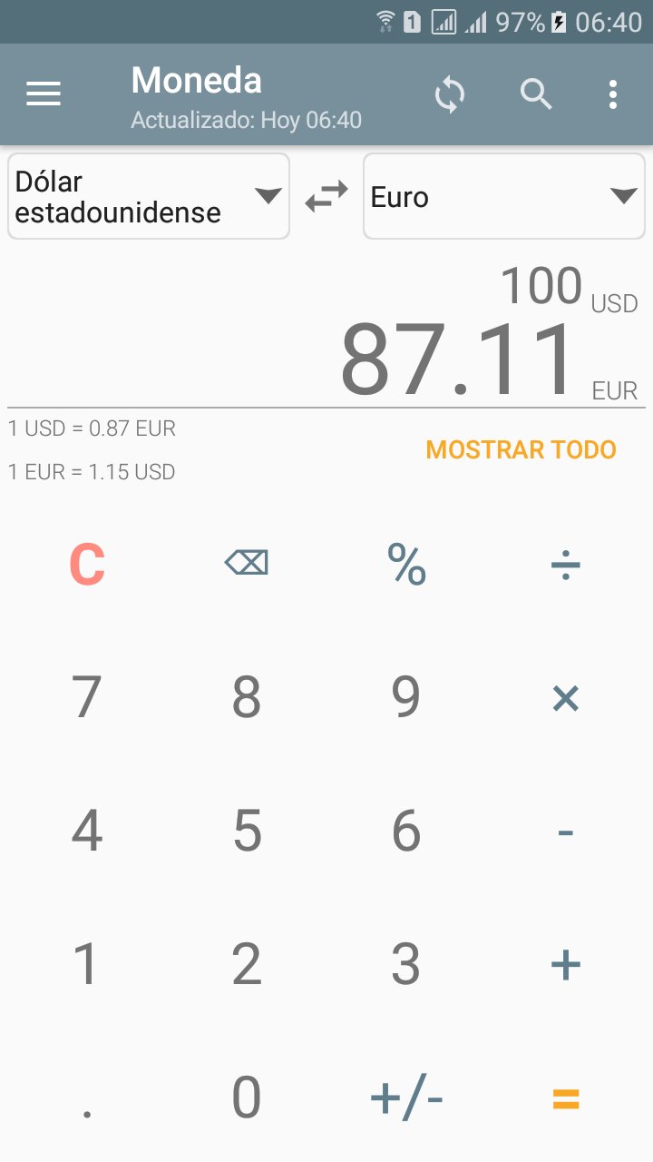 Tiene una de la mayor colección de unidades y divisas, este convertidor de la unidad es perfecta para el trabajo, la ingeniería, la escuela (como el ayudante de matemáticas), ir de compras, de viaje o en la cocina, adecuado para los usuarios ocasionales y avanzados. Pruébalo.