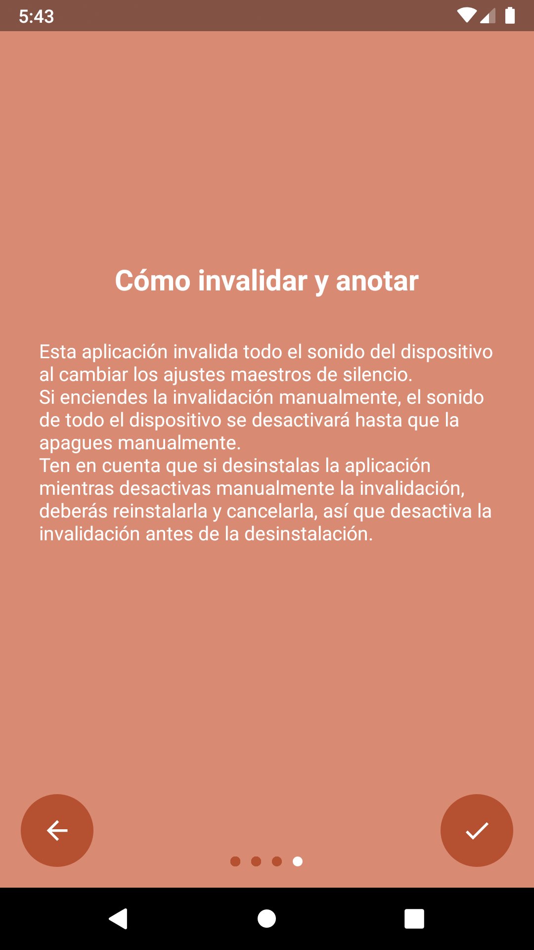 Esta aplicación invalida todo el sonido del dispositivo al cambiar los ajustes maestros de silencio.
