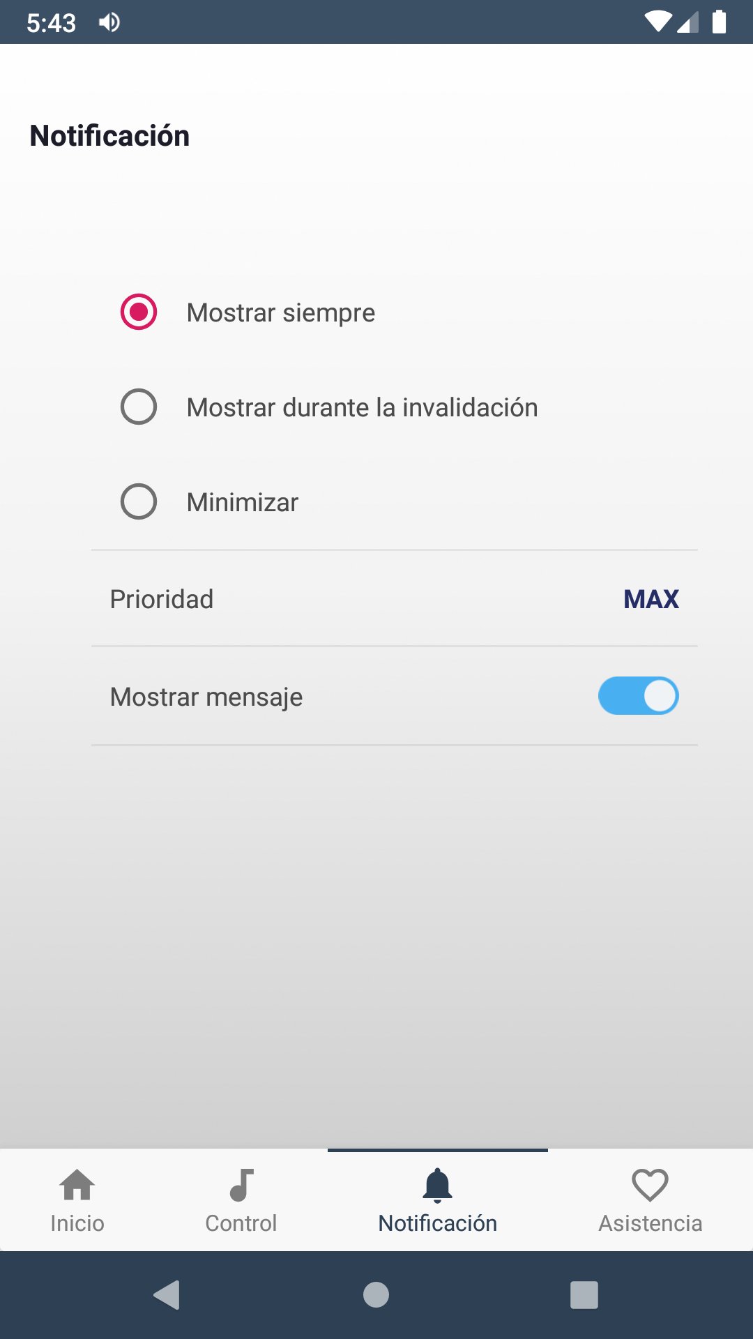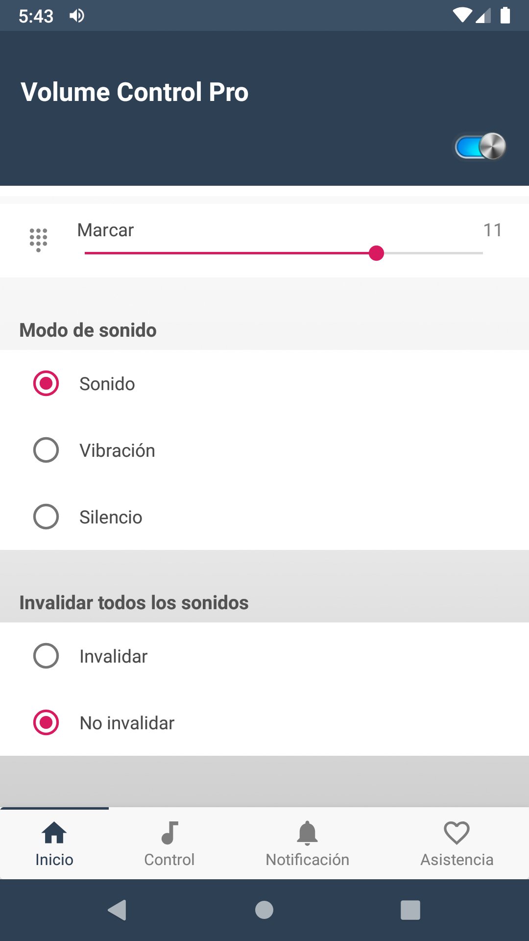 Si enciendes la invalidación manualmente, el sonido de todo el dispositivo se desactivará hasta que la apagues manualmente.
