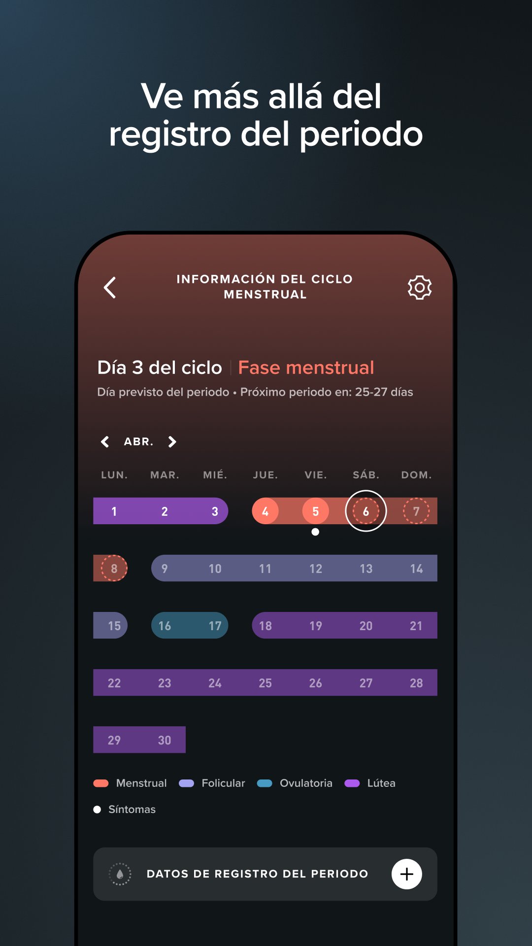 Información del ciclo menstrual: ve más allá del monitoreo del periodo para comprender mejor tus malestares y obtener información personalizada.