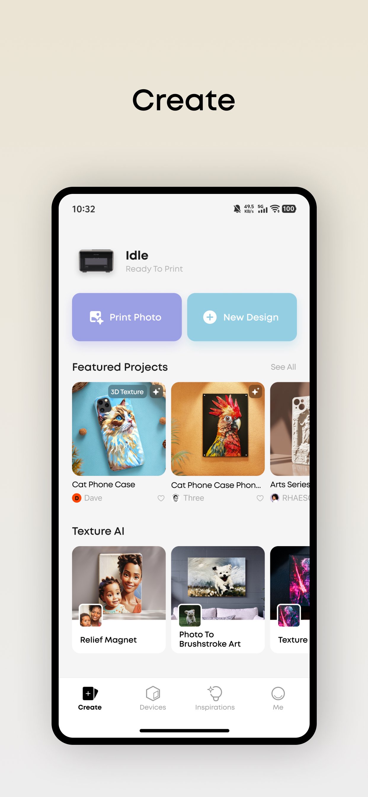 -Creative Community: Explore a rich library of UV-printed works and 3D creations shared by other creators. Get inspired, remix ideas, and showcase your own designs.