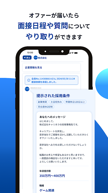 پس از دریافت پیشنهاد، می توانید به راحتی مستقیماً در داخل برنامه با شرکت تماس بگیرید تا شرایط را بررسی کرده و مصاحبه را تعیین کنید.