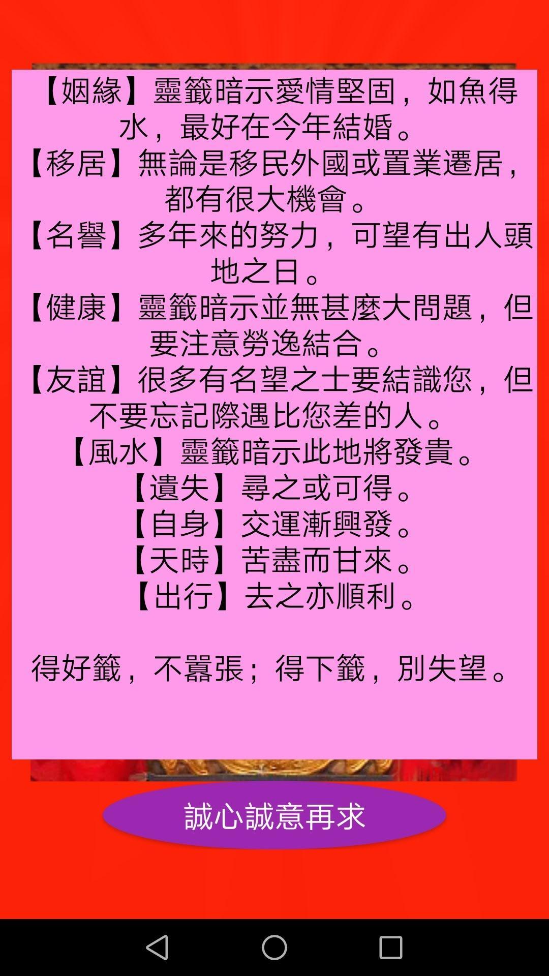 如果你心神恍惚,遇到事情時六神無主,無法好好判斷和下決定,不妨用手機求籤,問問前程,只要心誠則靈,而且有求必應,趨吉避凶。