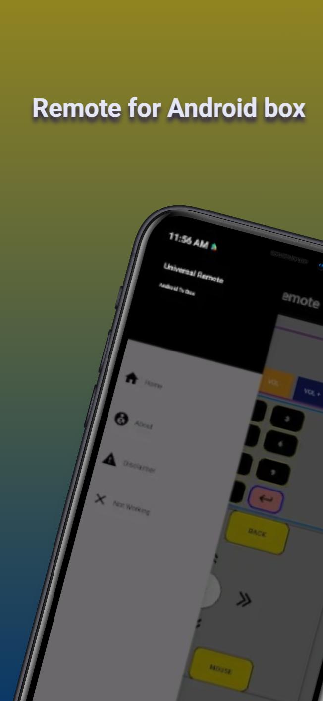 Remote Control for All Android Tv Boxes برنامه هوشمندی برای کنترل تمام عملکرد دستگاههای Android Tvbox شما است. این برنامه تمام قابلیتهایی را که ریموت فیزیکی شما ارائه میدهد و سایر عملکردهای پیشرفته را نیز ارائه میدهد. اگر کنترل از راه دور فیزیکی شما آسیب ببیند یا گم شود، این برنامه به شما کمک زیادی می کند. این برنامه بر روی تمام تی وی باکس های اندروید بدون برنامه نویسی کار می کند. این برنامه کاملاً به IR Blaster وابسته است تا با جعبه تلویزیون پاسخ دهد، بنابراین تلفن هوشمند شما باید دارای سنسور IR باشد، در غیر این صورت این برنامه کار نخواهد کرد.