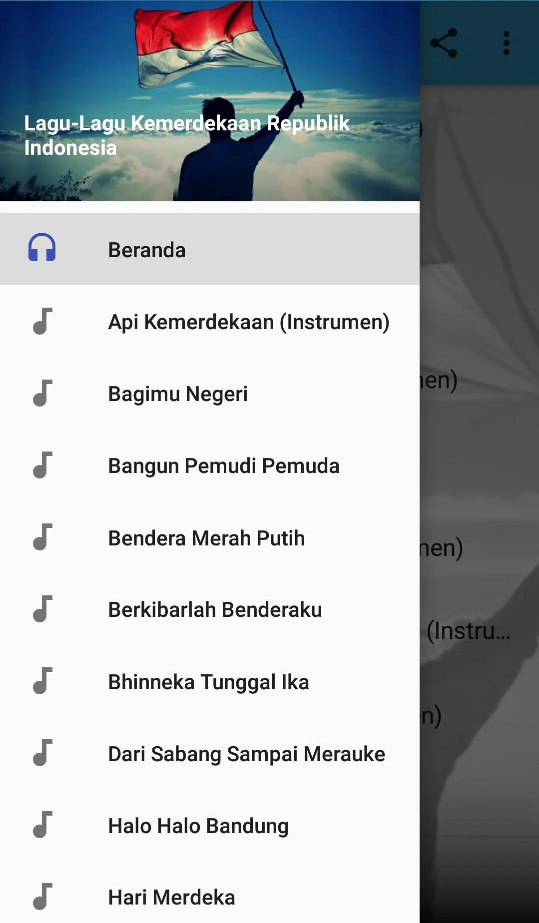 مجموعه کامل آهنگ های استقلال اندونزی. به روح ناسیونالیسم می افزاید. Merdeka