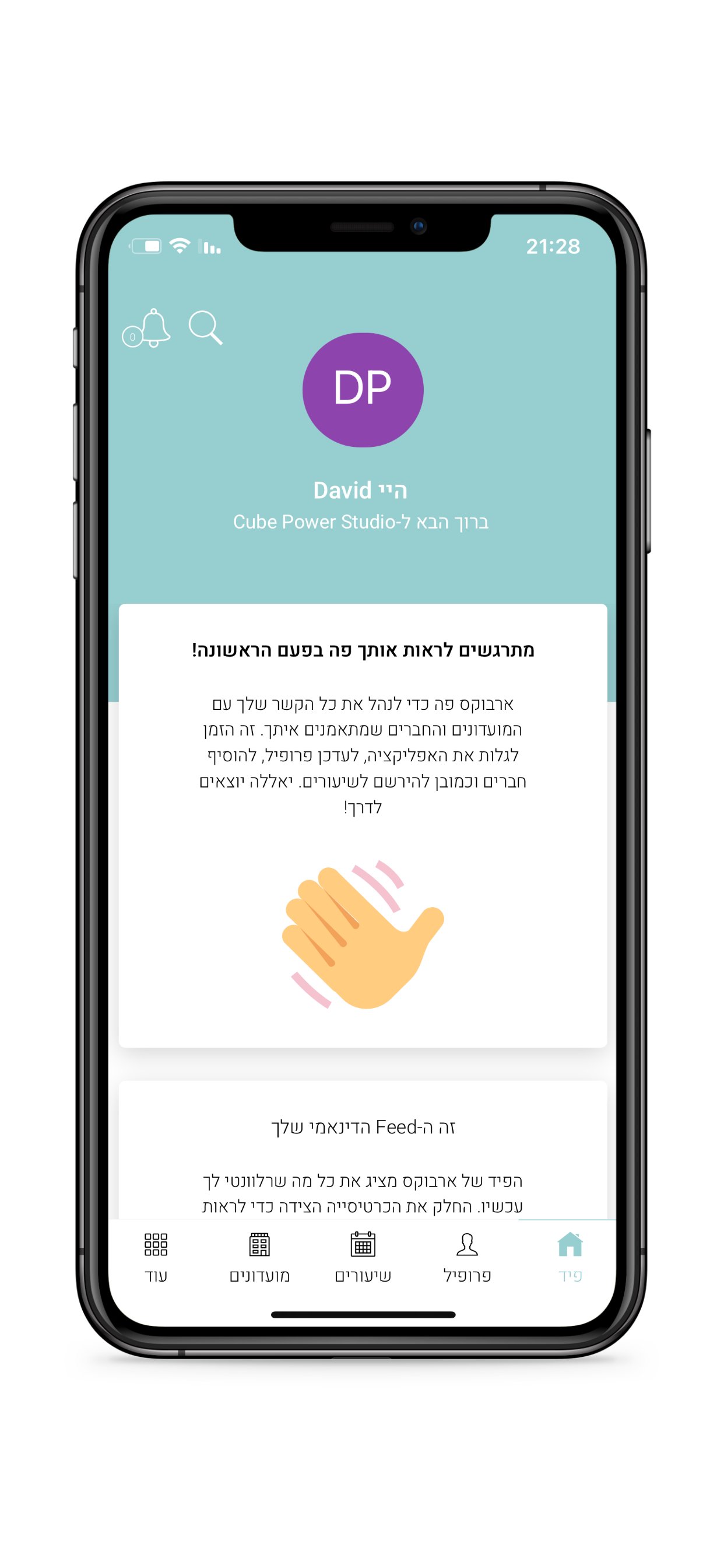 این برنامه برنامه Cube Power Studio است که برای تمام اتصالات شما با آنها استفاده می شود. این مکان برای رزرو کلاس ها، دریافت پیام از سازمان و برقراری ارتباط با مردم در کلاس است.