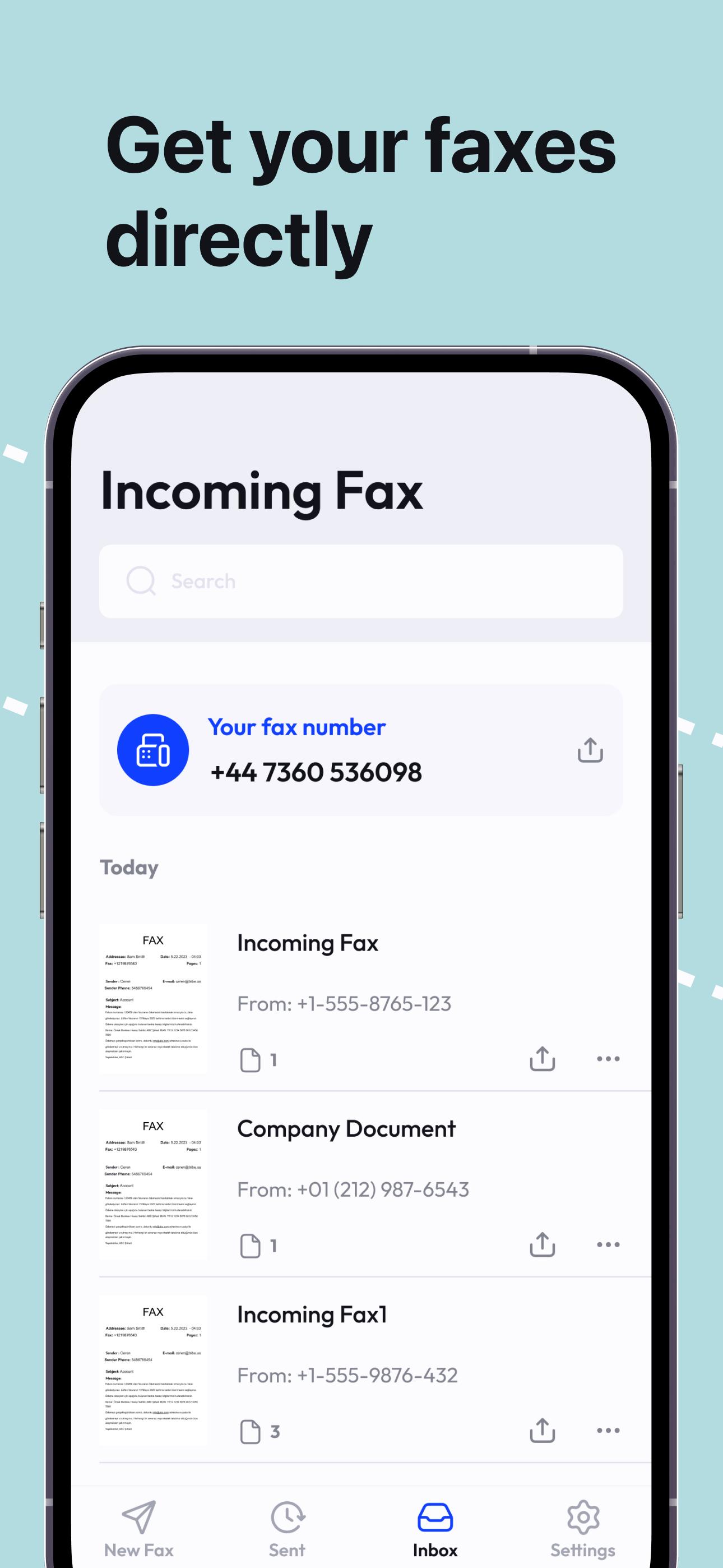 - تقریباً هر نوع فایلی را به عنوان فکس (PDF، DOC، JPG، PNG) ارسال کنید.