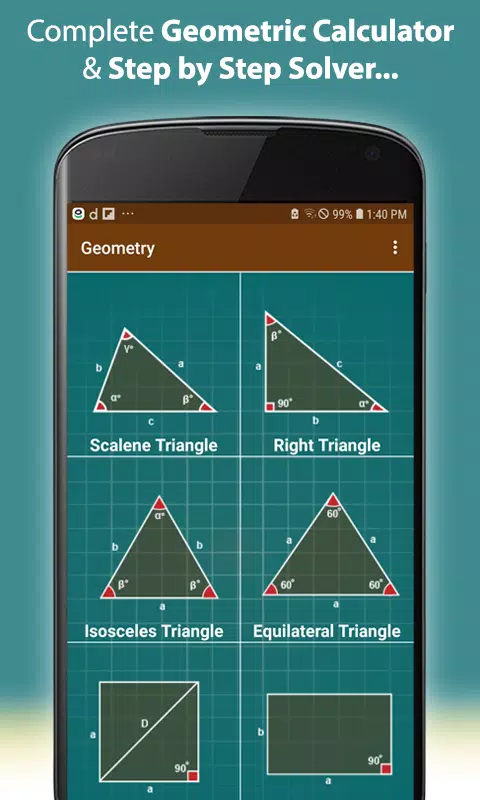 ماشین حساب هندسه همچنین فرمول ها و معادلات را برای ساده کردن یادگیری مثلثات آسان نشان می دهد.