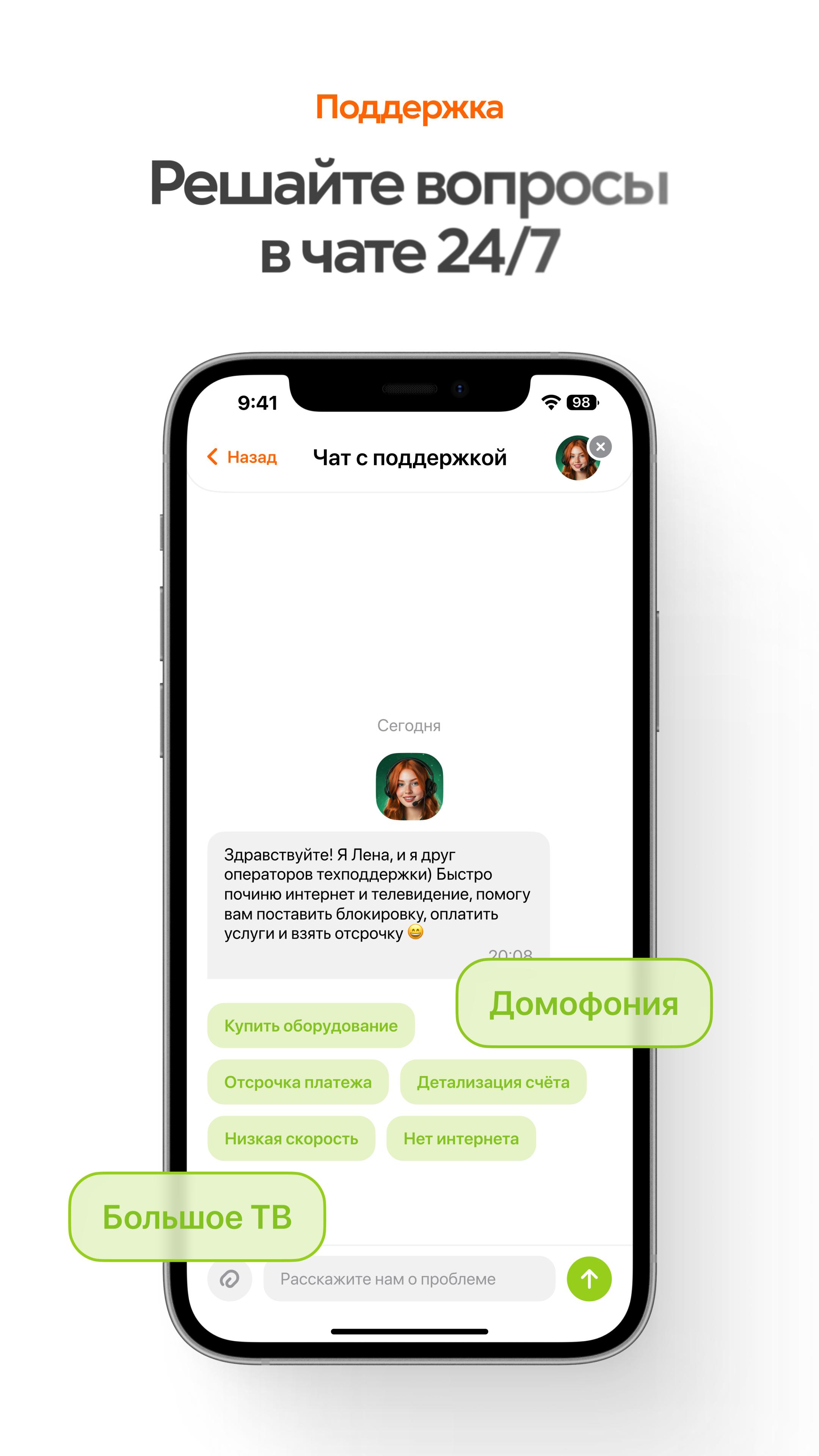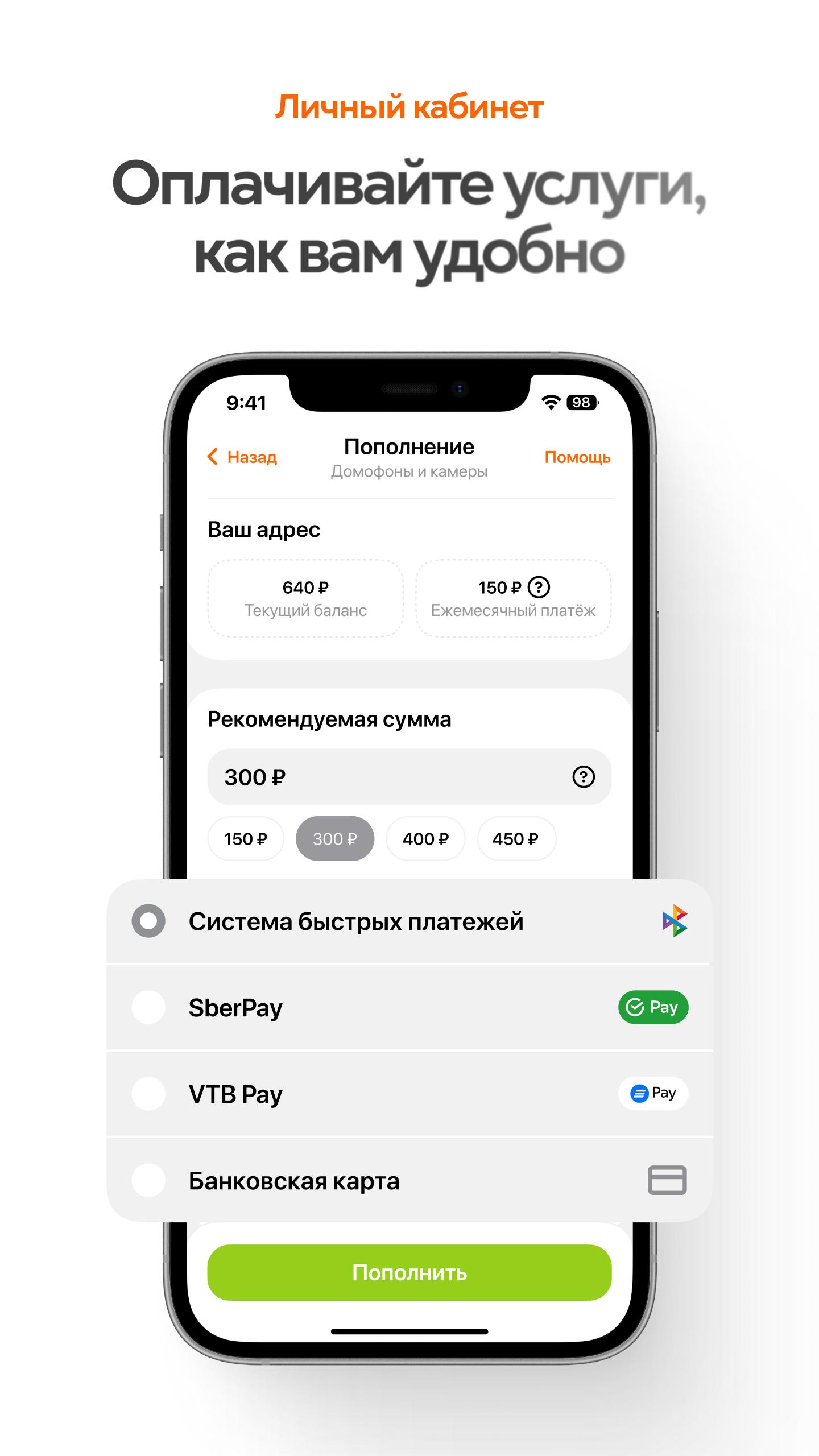 برای خدمات از طریق SBP پرداخت کنید، پرداخت خودکار را متصل کنید و همیشه در تماس باشید. تعرفه ها را مدیریت کنید و خدمات جدید را به راحتی وصل کنید یا از "انسداد داوطلبانه" در طول تعطیلات استفاده کنید تا اضافه پرداخت نکنید. جزئیات پرداخت را دریافت کنید و به روز باشید - ما در مورد کار و حوادث به شما هشدار می دهیم و اعلان های به موقع به شما کمک می کند چیزی را از دست ندهید.