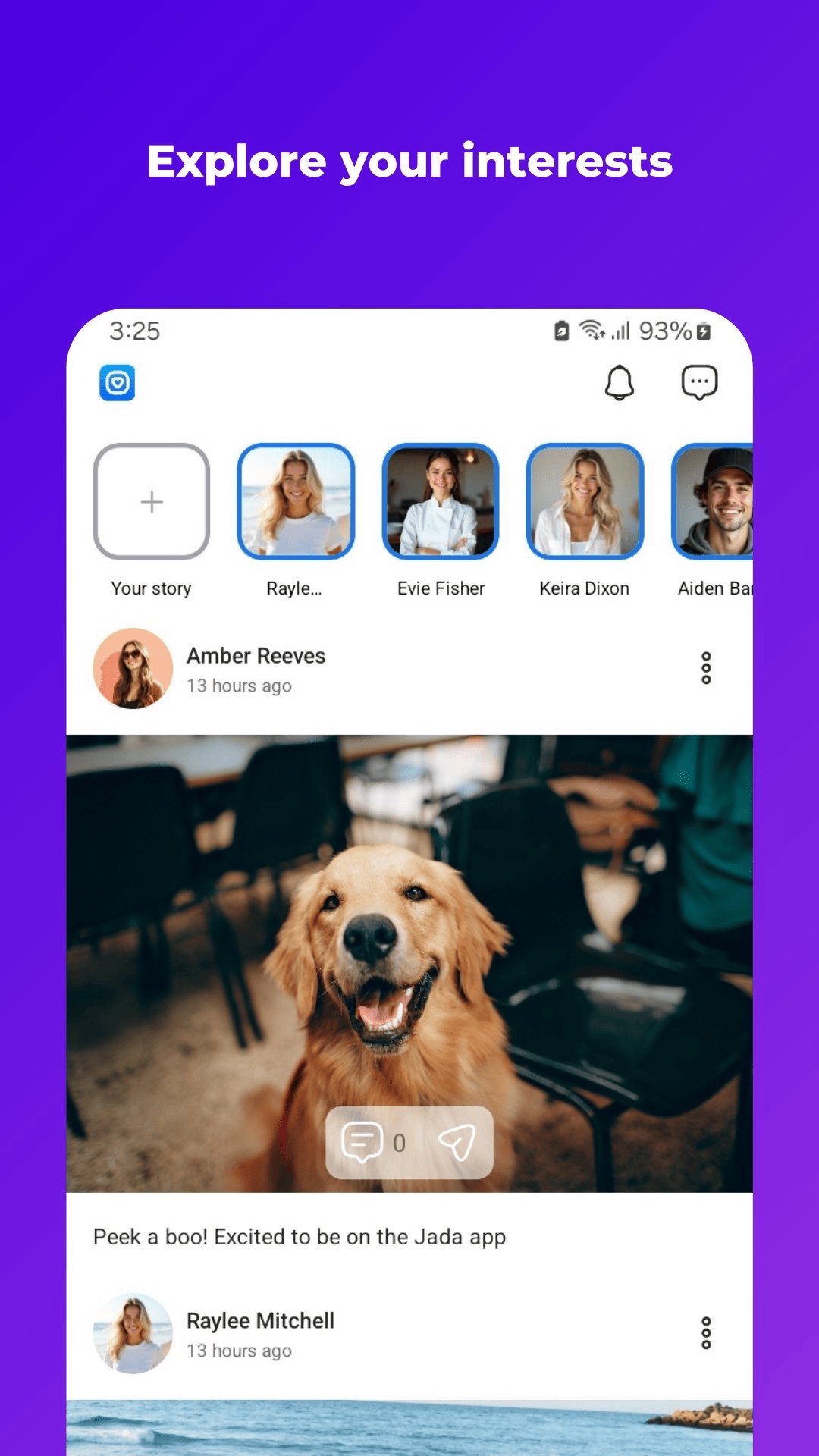 خود را از طریق گفتگوها، واکنش ها و تعاملات معنادار بیان کنید. بهروزرسانیها را در فید Jada به اشتراک بگذارید، عکسها و ویدیوها را پست کنید و با دنبالکنندگان خود درگیر شوید.