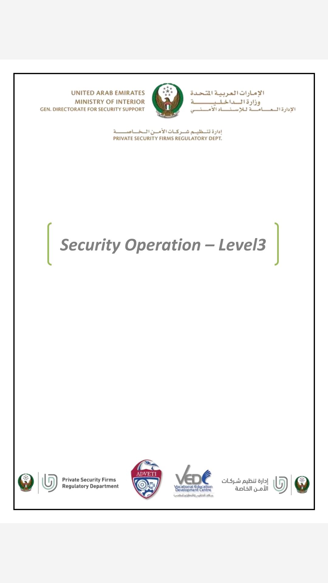 در نتیجه فوری قانون فدرال شماره 37 در سال 2006، مرجع تنظیم کننده امنیت خصوصی به مرجع تنظیم مقررات فدرال تبدیل شد که اکنون به عنوان بخش سازماندهی شرکت امنیت خصوصی (PSCOD) شناخته می شود و مسئول نظارت بر صنعت امنیت خصوصی در سطح ملی است. این امر منجر به تأسیس مؤسسه امنیت ملی (NSI) شد که مسئولیت ایجاد استانداردهای آموزشی در امارات برای نگهبانان امنیتی را به عهده گرفت و به عنوان بازوی آموزشی PSCOD در نظر گرفته شد.