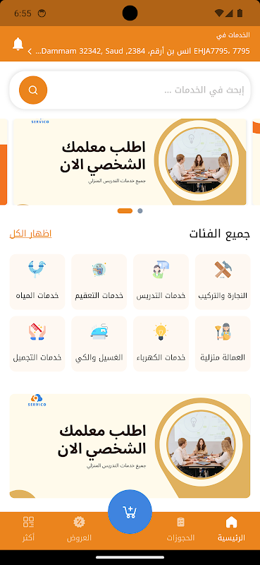 اپلیکیشن سرویکو برای کلیه خدمات منزل به سرعت از طریق بهترین نیروی انسانی و شرکت های مجاور محل سکونت شما، خدمات نظافتی، نگهداری، زیباسازی، حمل و نقل و اثاثیه، اصلاح، تعمیر خودرو و شستشوی خودرو در تمامی شهرهای کشور پادشاهی عربستان سعودی.Last updated on 08/05/2024
