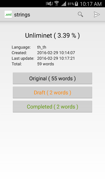 Open your strings.xml to translate to other languages with this application.Last updated on 28/02/2016