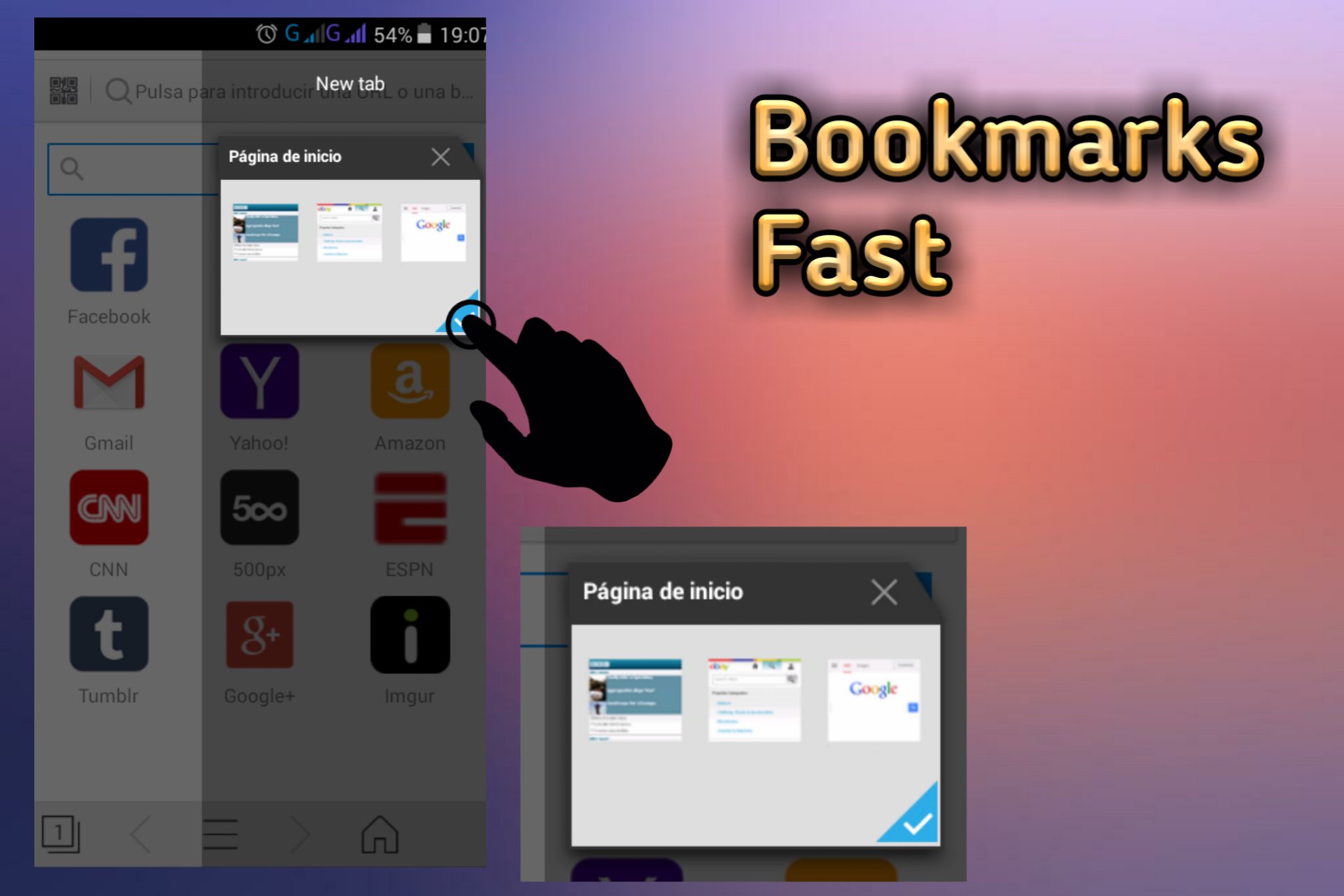 - Compatible con la página de inicio, Favoritos, Historial, huella pequeña y el modo de pantalla completa.