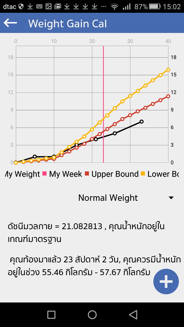 For awareness of becoming parents, ZBaby Plus is developed as an android application to calculate the pregnancy due date, fetus development simulation, weight gain during pregnancy and the amount of calorie in needs. Pregnancy due date is calculated based on user defined data which is the last menstruation. Next, user can view the simulation of 3D fetus development with description week by week using OpenGL ES. Then the weight gain during pregnancy is calculated from the BMI based on the specification by IOM 2009 while allowing a user to manage her weight gain as well. Updated weight data were recorded and plotted dynamically. Daily calorie requirement can be calculated during pregnancy by Harris-Benedict Equation to maintain the appropriated weight for healthy baby without overeating. Other available functions are recording photos & data in monthly basis, diary for unexpected incidents, vaccine timeline reminder and guiding for mom to take care of baby. ZBaby Plus is a part of 'Lifelong Health IT Project for Thai Citizen'. For accuracy testing, ZBaby Plus has been approved by Ethic Committee, applied in the project "ZBaby Plus: Android application for pregnancy due date, fetus development simulation and weight gain during pregnancy (Quality evaluation program)." from faculty of Nursing, Chiang Mai University on 5th September 2016.Last updated on 07/03/2017