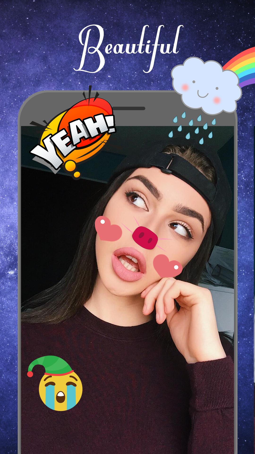 A lot of sets will give you a chance to choose from like Pets stickers, Cartoon, Cinema. Add smiley Doggy Face, rainbow filter, Rabbit Face, anime eyes, tears in just a few seconds.