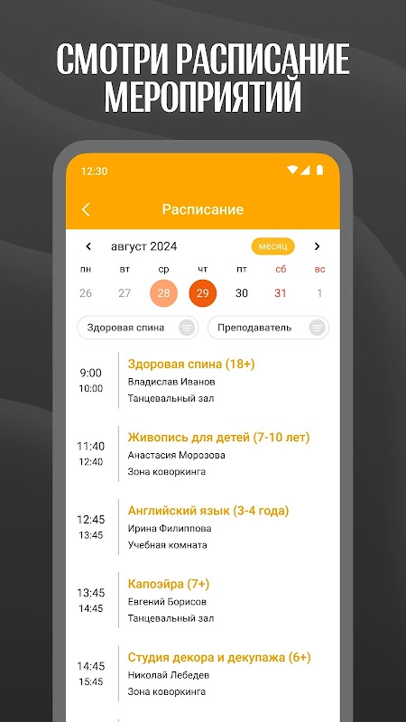 — enregistrement en ligne pratique des visiteurs pour les cours et pratiques collectifs et individuels ;