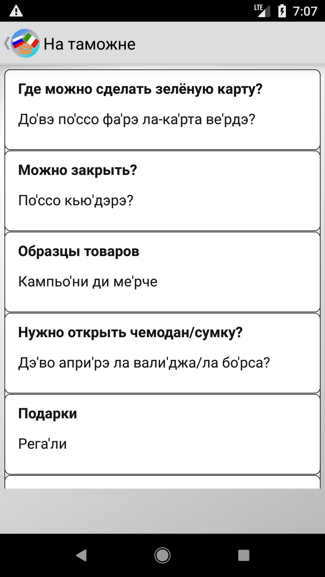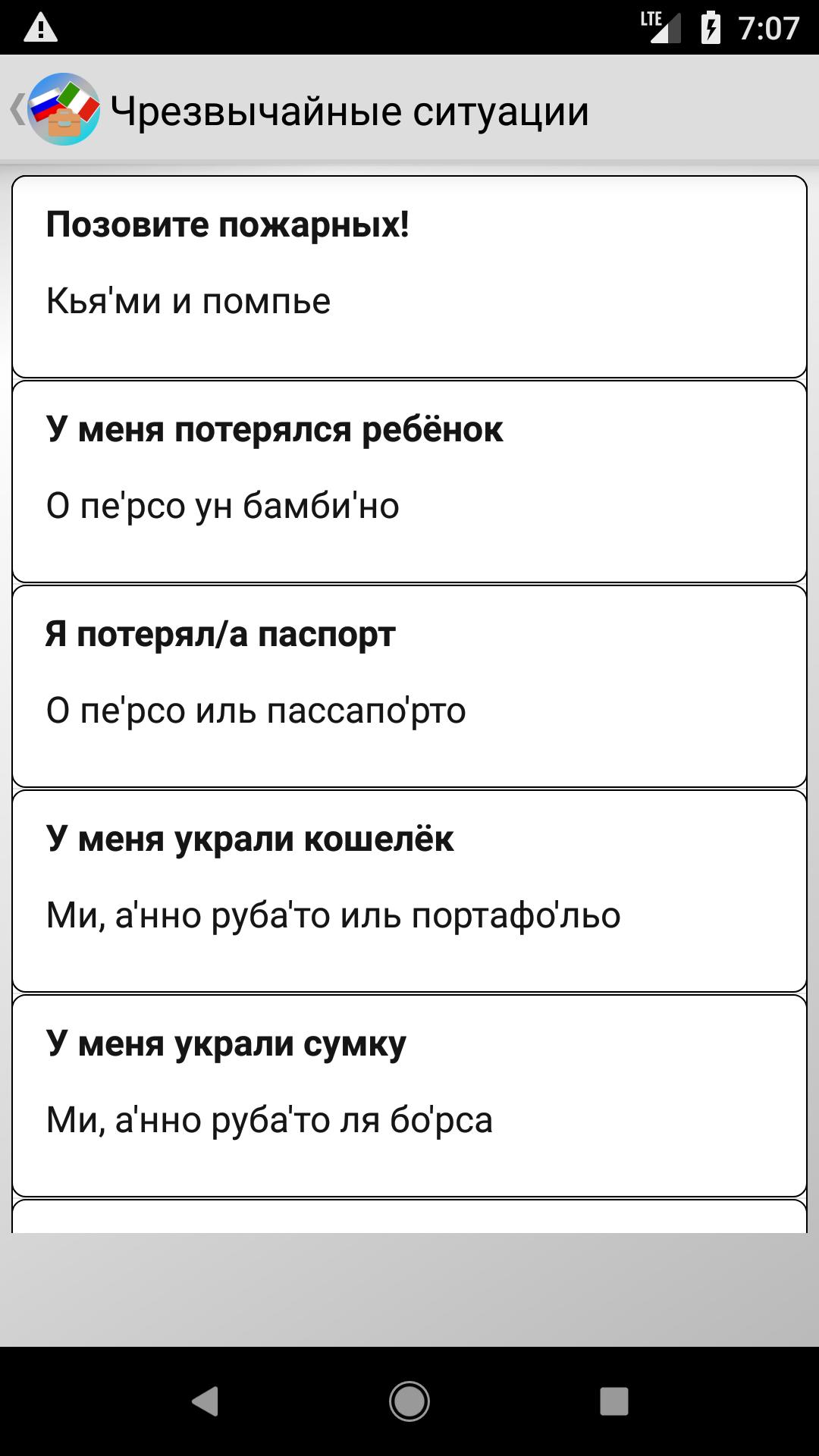 ✈ В разговорнике фразы разделены на тематические категории в зависимости от ситуации, в которой вы оказались