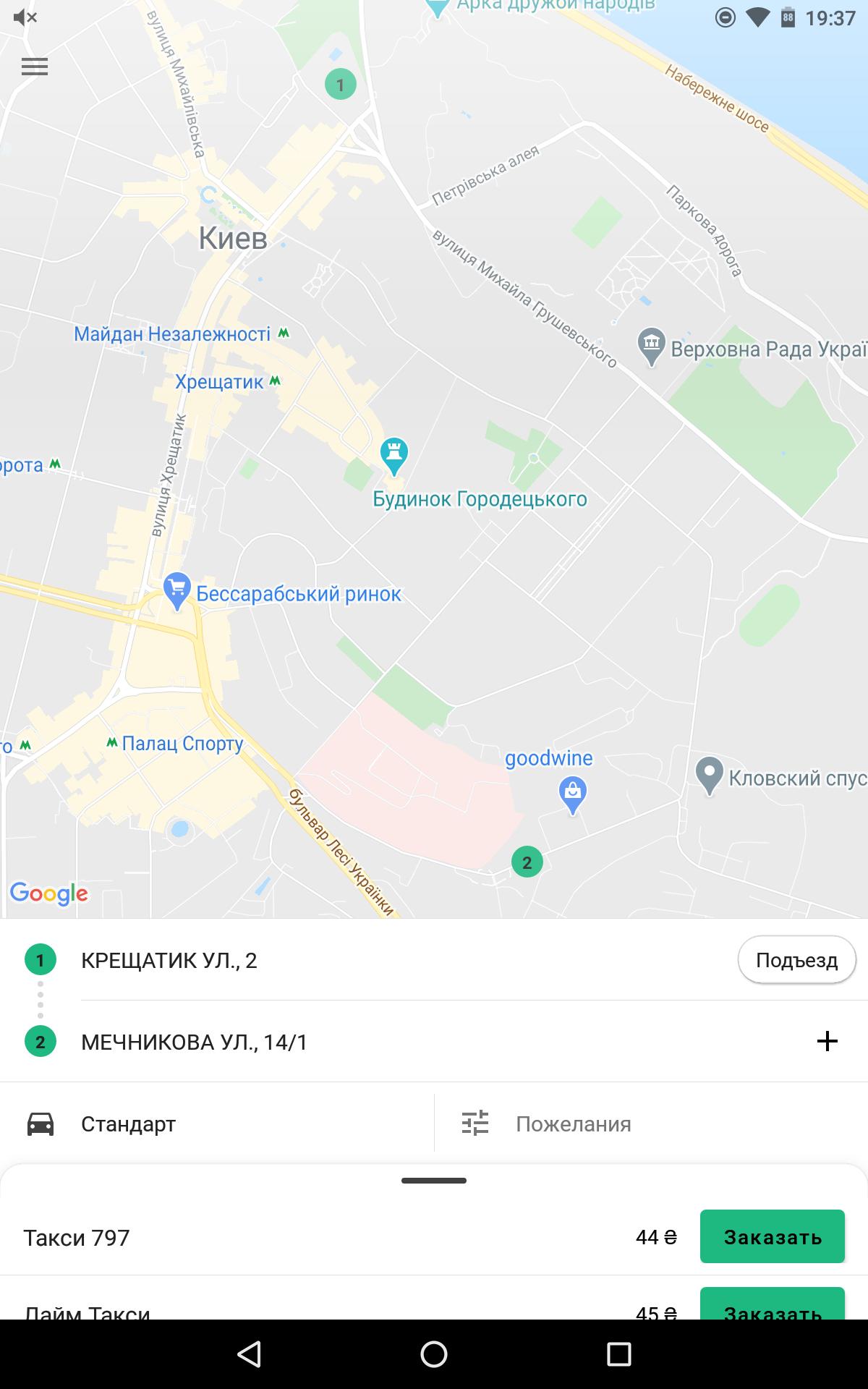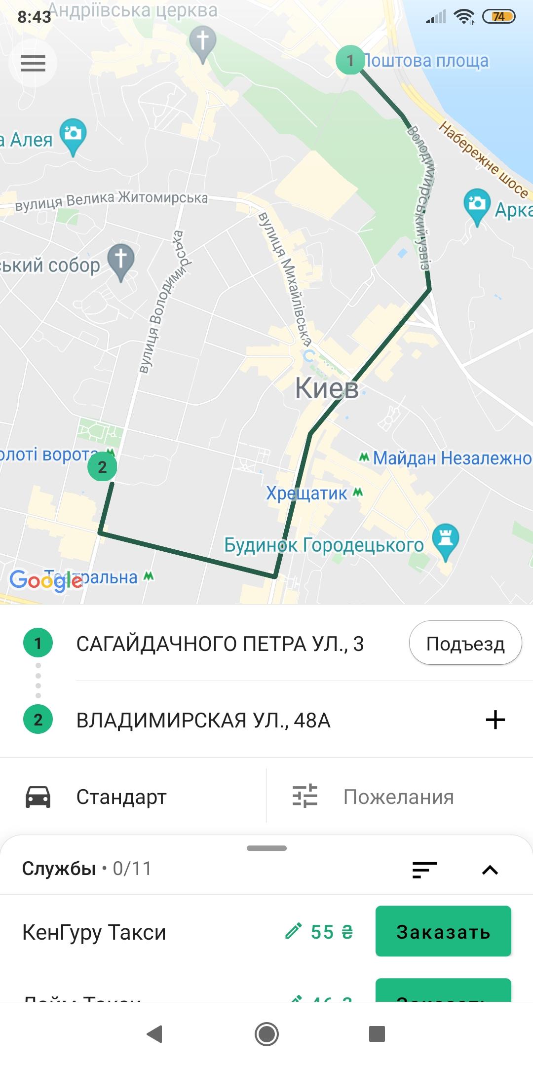 Spécifiez l'itinéraire du voyage et l'application calculera le coût de plusieurs services de la ville de Kiev à la fois.