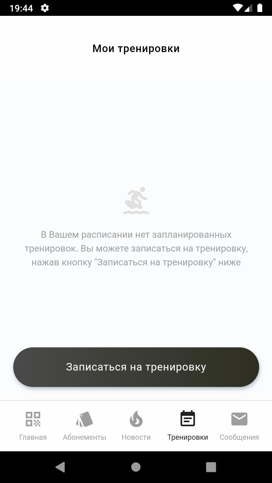 Регистрация в приложении будет доступна после включения администратором спортклуба соответствующей настройки