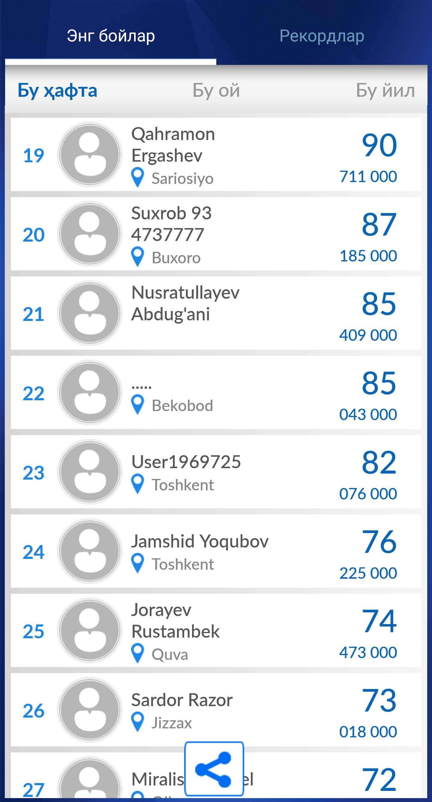 • Локацияга асосланган рейтинг – Регионингиздаги ўйинчилар орасидаги рейтингингизни кўришингиз мумкин. Танлаган локациянгиз - ўз уйингиз, ишхонангиз, ўқиган мактабингиз бўлиши мумкин.