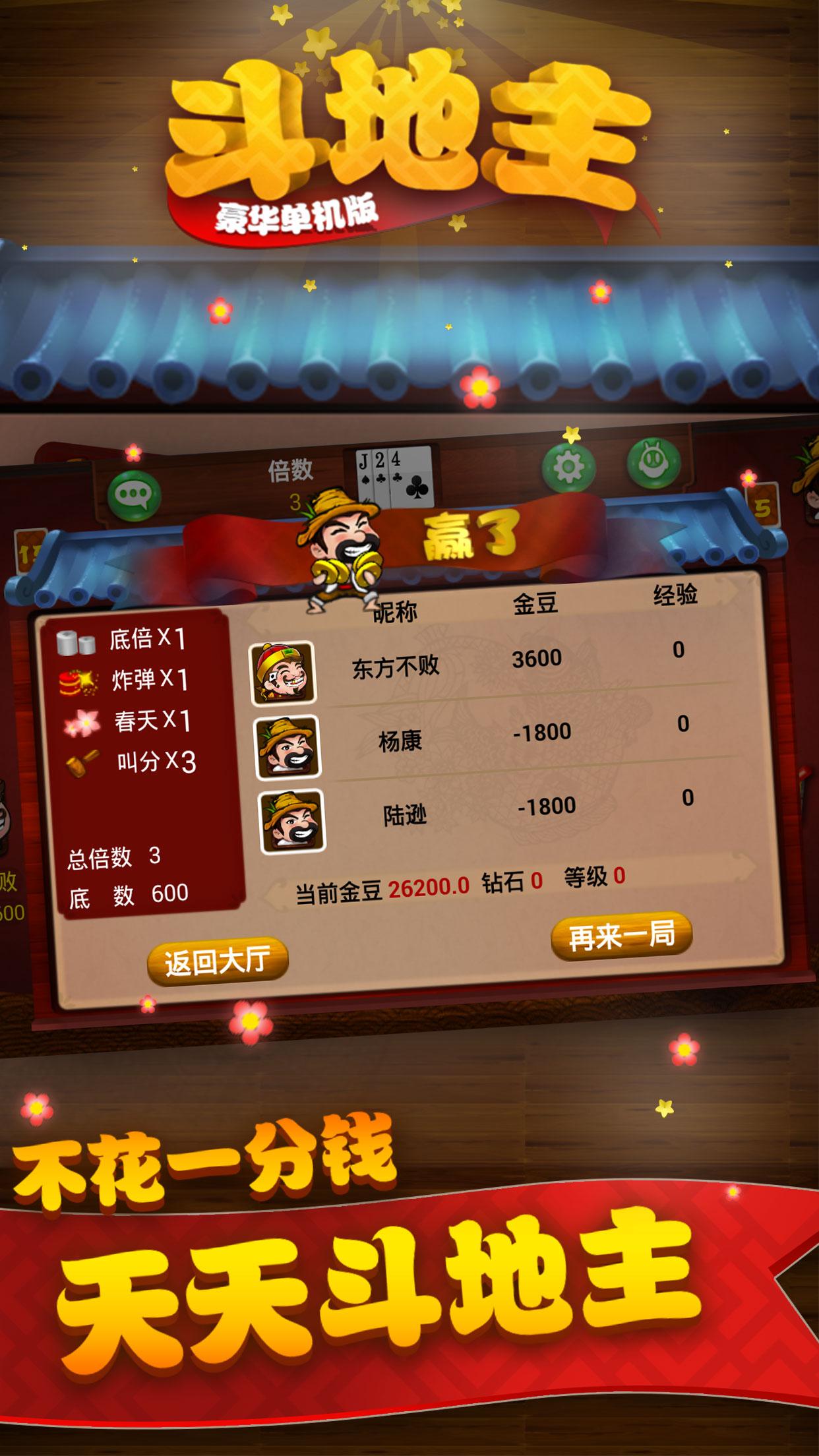 《单机斗地主》是安卓里非常旺的单机斗地主。这款斗地主配置了超智能电脑来挑战你的大脑,在娱乐的同时也能提高自己的牌技;一键触摸出牌叫牌,毫无生涩感,行云流水般的流畅度带您愉快遨游斗地主世界!卡牌的情况不会出现,让您上手无烦恼!