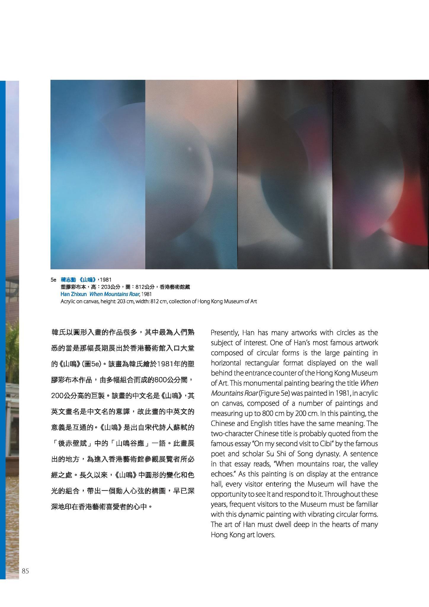 "Art Appreciation and Criticism in Context - Examples of Understanding Hong Kong Art through Culture", talks about the art works of eight local artists, Luis Fushan Chan, Yang Shanshen, He Bingcong, Lu Shoukun, Han Zhixun, Wucius Wong, Zhang Yi and Dominic Man-kit Lam, elaborating Hong Kong's flourishing artistic creativity and development path, as well as the creativity in local arts and cultural connotations.