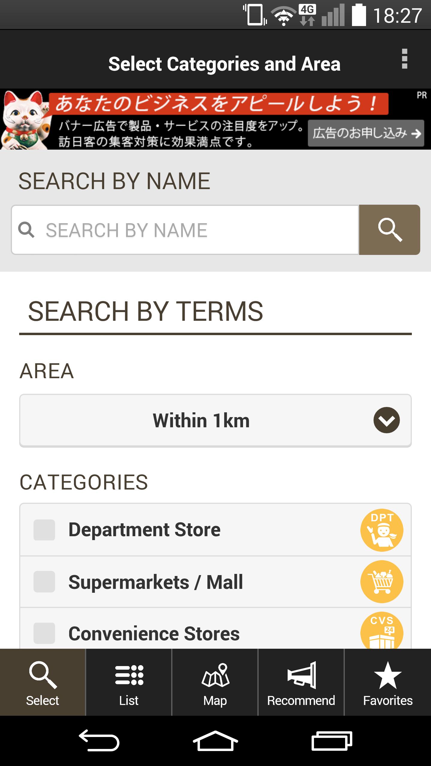 4언어 대응, 22카테고리의 분류, 또한 각 지역의 특성에 맞는 쇼핑 정보가 가득합니다.