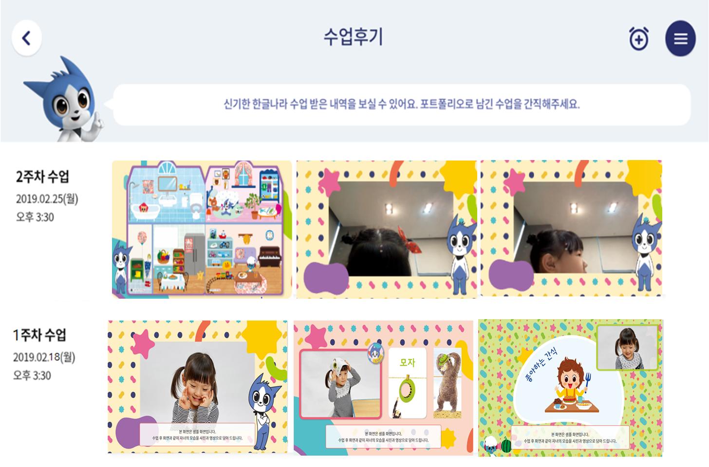 * 매 수업 기록되는 수업 영상으로 우리 아이 성장 히스토리를 한눈에!