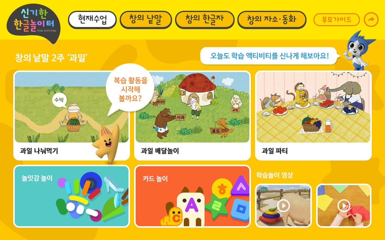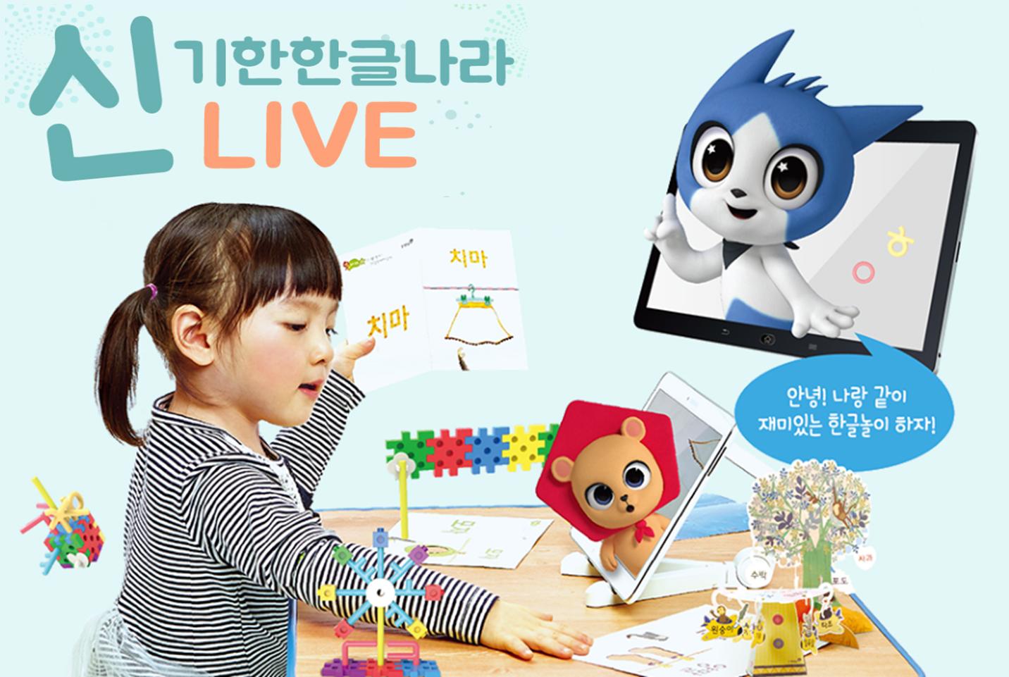 재미있는 디지털 컨텐츠와 결합해 더욱 새로워진 한글나라! 이제 신기한 한글나라를 캐릭터와 함께하는 화상 한글 수업으로도 만나보실 수 있습니다.