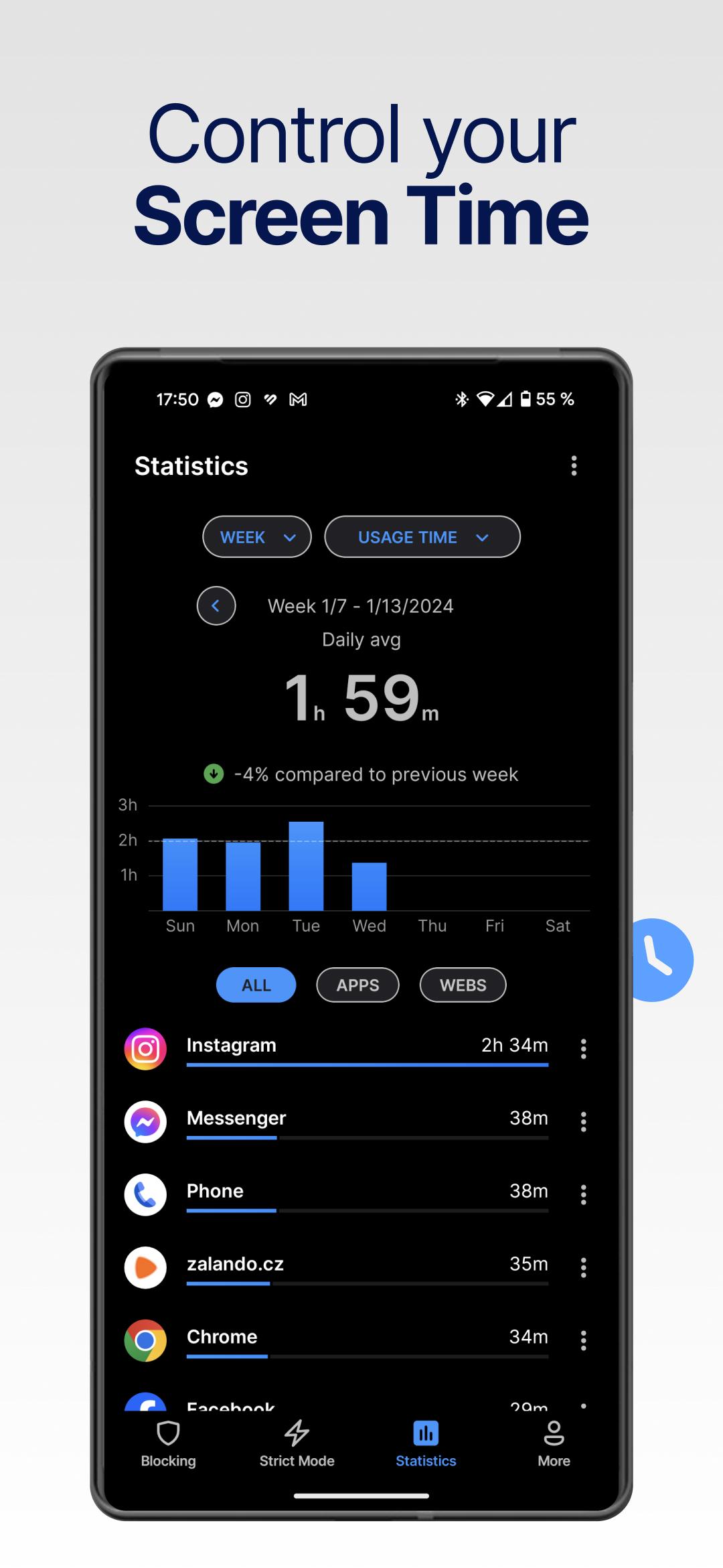 - 94% of strict mode users have 60% less screen time