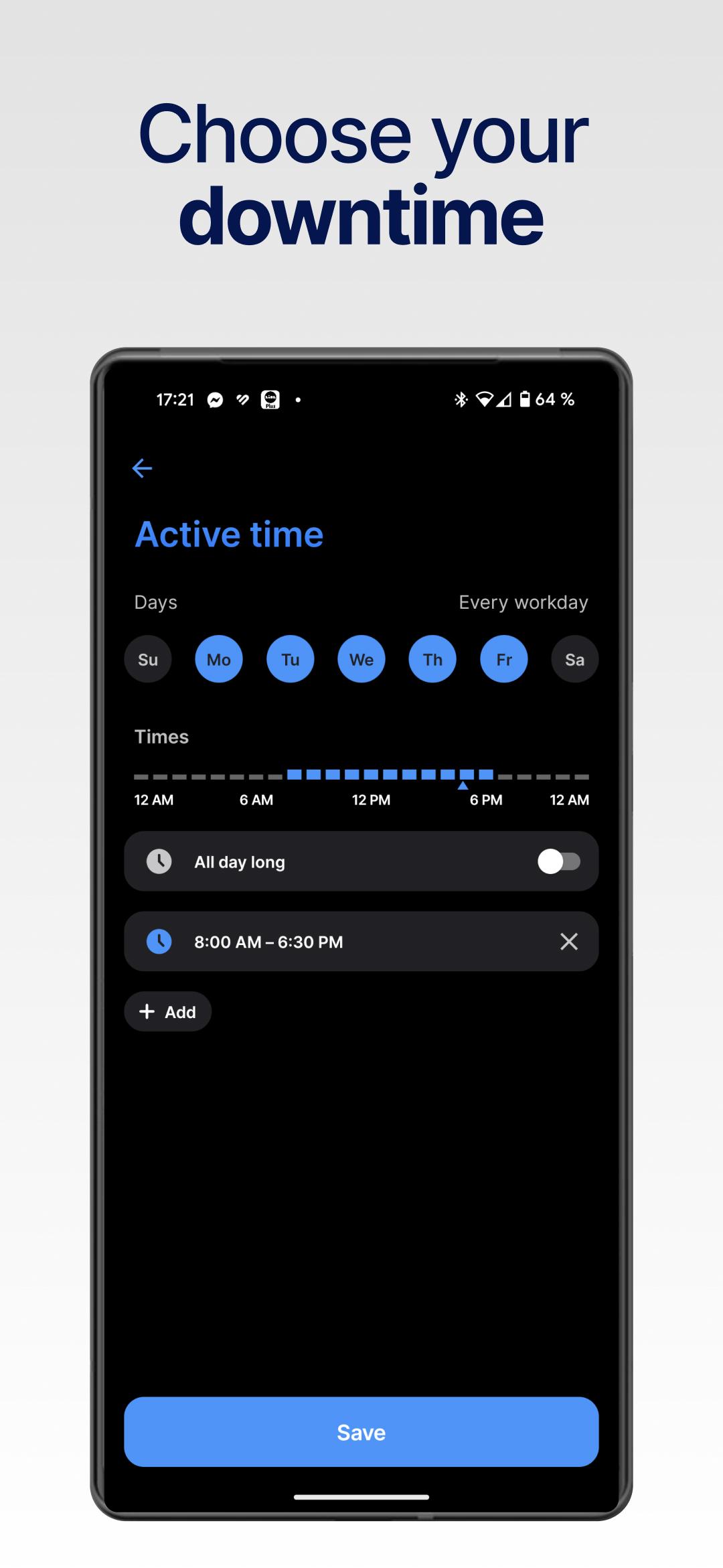Control screen time, block apps, websites or social media, and transform your digital life. Prioritize tasks, boost productivity and enhance your digital wellbeing.